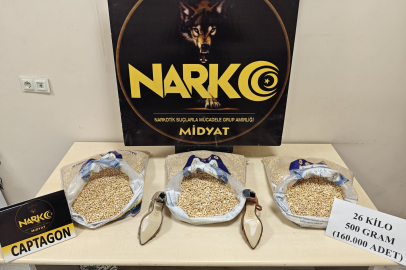 Midyat Narkotik Suçlarla Mücadele Büro Amirliği ve KOM Büro Amirliği ekiplerince Cumhuriyet Başsavcılığı koordinesinde yürütülen operasyonda, Seyitler Mahallesi Yılmaz Güney Caddesinde bir adreste arama yapıldı. Aramada, ayakkabı kolileri içerisinde bulunan kadın ayakkabıları topuk kısımlarına yapılan özel bölmelerde gizlenmiş vaziyette 26 kilo 500 gram toplam (160 bin adet) uyuşturucu ve uyarıcı captagon hap ele geçirildi.