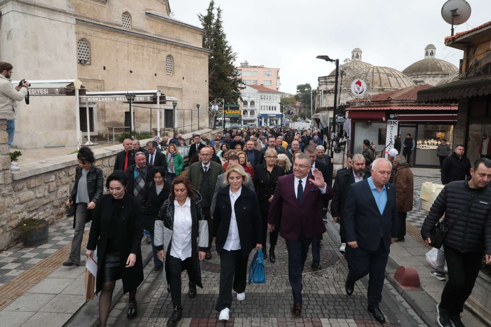 Kalabalık bir heyet ile parti binasına giden Başkan Kesimoğlu’nu, eşi Sibel Kesimoğlu, CHP Kırklareli milletvekili Fahri Özkan başta olmak üzere, kalabalık bir partili topluluğu yalnız bırakmadı.