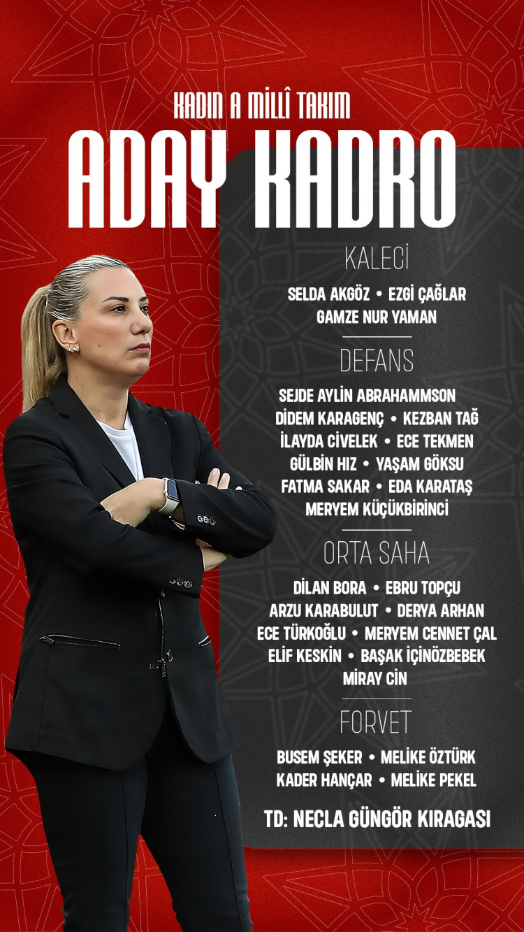 A Milli Kadın Futbol Takımı'nın aday kadrosunda yer alan futbolcular şu şekilde: