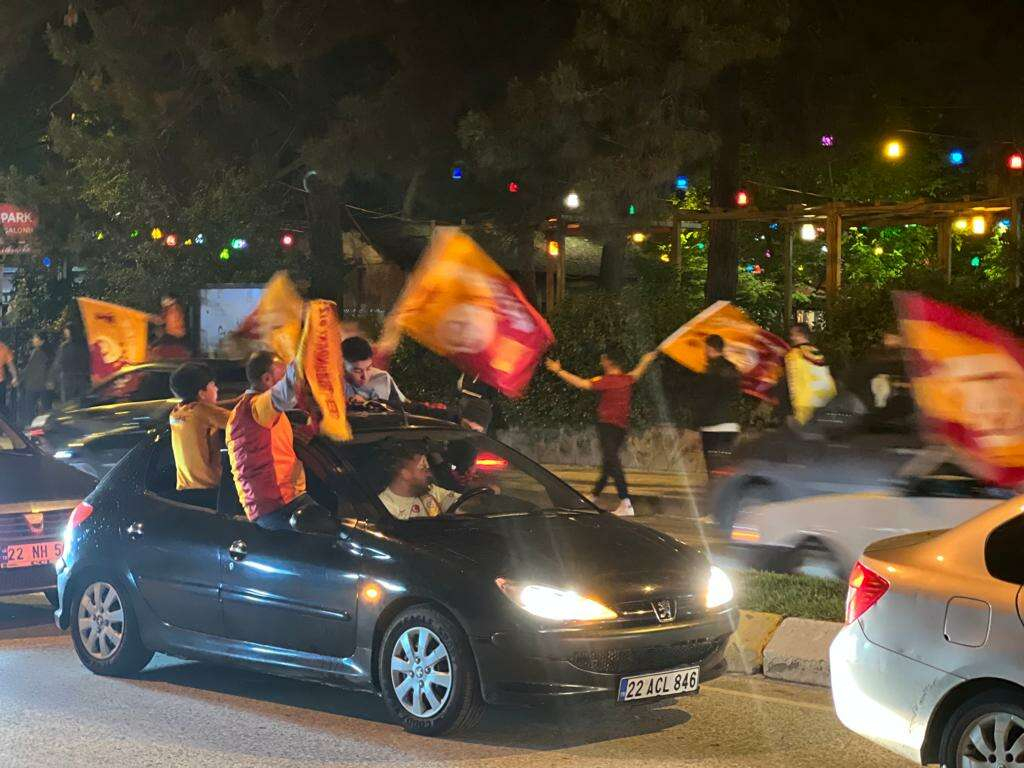 Edirneli Galatasaray taraftarları ise şehrin her yerinden gelerek Üniversite sokağında toplandılar. Ellerinde meşalelerle, üstlerinde formalarıyla takımlarının şampiyonluğunu kutlayan taraftarlar, cadde boyunca yürüyerek marşlar söyledi.