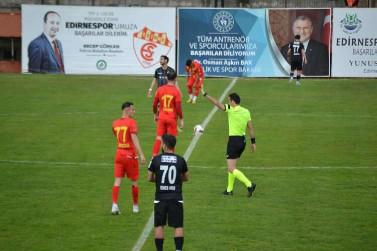 Edirnespor, sahaya Ahmet Çolak, Tayfun Kırca, Ahmet Keleş, Kemal Can Aydemir, Emre Gürsel Hürcan, Uğur Ayhan, Yağız Berkay Hazar, Said Can Açıkalın, İlkay İşler, İlhan Topatar ve Atakan Serin ilk 11’i ile çıktı. Sarı kırmızılıların yedekleri ise Baver Kuçkar, Ahmet Baykal, Yunus Özdemir, Abdulsamet Kırım, Abdussamet Yılmaz, Serhat Emirler, Volkan Ünlü, Ümitcan Eksi ve Efe Yüceer’den oluştu.