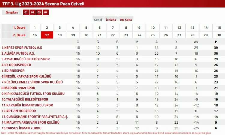 Edirnespor, deplasmanda aldığı beraberlik ile ile A Grubu’nda 25 puana yükseldi. 7 galibiyet, 4 beraberlik ve 5 yenilgisi bulunan sarı kırmızılılar, puan cetvelinde ise 5’inci sıraya geriledi. Sarı kırmızılılar, ligin 18’inci haftasında ise Kırıkkalegücü Futbol Spor Kulübü ile 25 Kasım Stadı’nda karşılaşacak. Karşılaşma, 4 Şubat Pazar günü saat 14.00’te başlayacak.