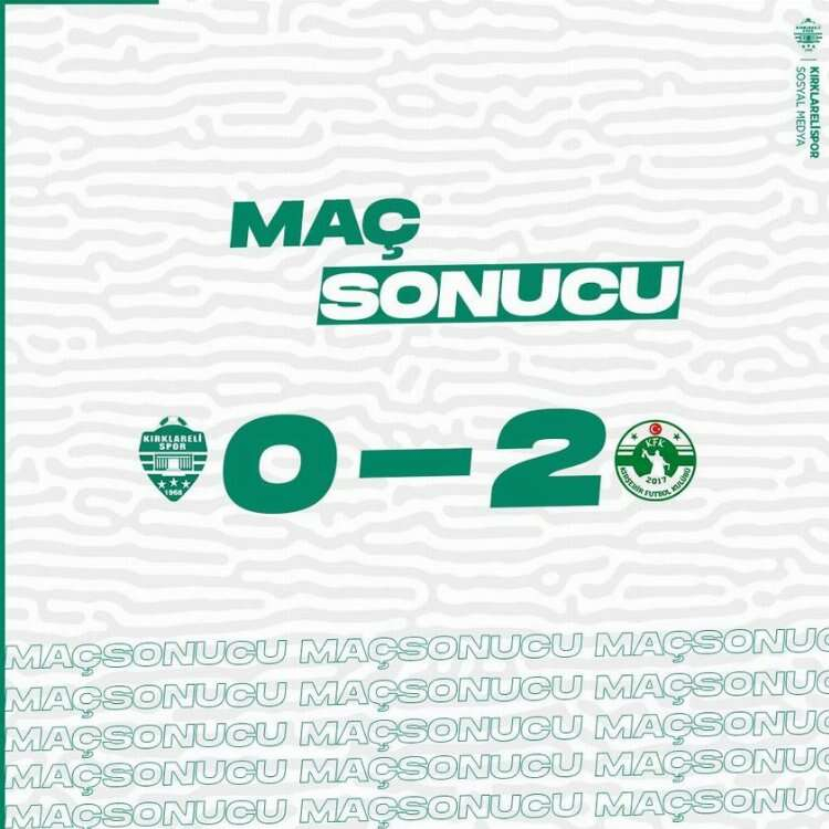 Bugün oynanan karşılaşmada, 35’inci dakikada Furkan Tütüncü'nün attığı golle 1-0 geriye düşen Kırklarelispor, 59’uncu dakikada da Tolga Şahin'in golüne engel olamayarak maçtan 2-0 mağlup ayrıldı.