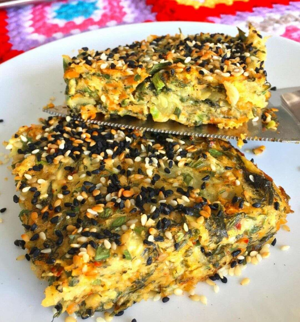 Kabağı rendeleyelim ve suyunu iyice sıkalım. Havucu, patatesi, sarımsağı rendeleyip kabaklarımızın üzerine ekleyelim. Baharatlarımızı, yağımızı, yeşilliklerimizi ve ayrı bir tabakta çırpılmış olan yumurtamızıda içine ekleyelim. Karıştıralım. En son unumuzu ve kabartama tozumuda ekleyip karıştırdıktan sonra yağladığımız kabımıza yayalım. Önceden ısıtılmış 185 derece fırında 45 dk pişirelim.